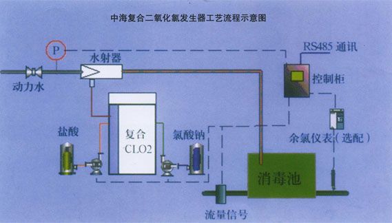 復(fù)合二氧化氯發(fā)生器采用氯酸鈉、鹽酸為原料,負(fù)壓曝氣技術(shù),現(xiàn)場(chǎng)制備以二氧化氯為主、氯氣為輔的復(fù)合消毒液。適用于飲用水、工業(yè)循環(huán)冷卻水、市政污水、董院污水、油田回注水、游泳池水、水產(chǎn)養(yǎng)殖用水等領(lǐng)域以及特種工業(yè)廢水的破氰、除酚、脫色處理。